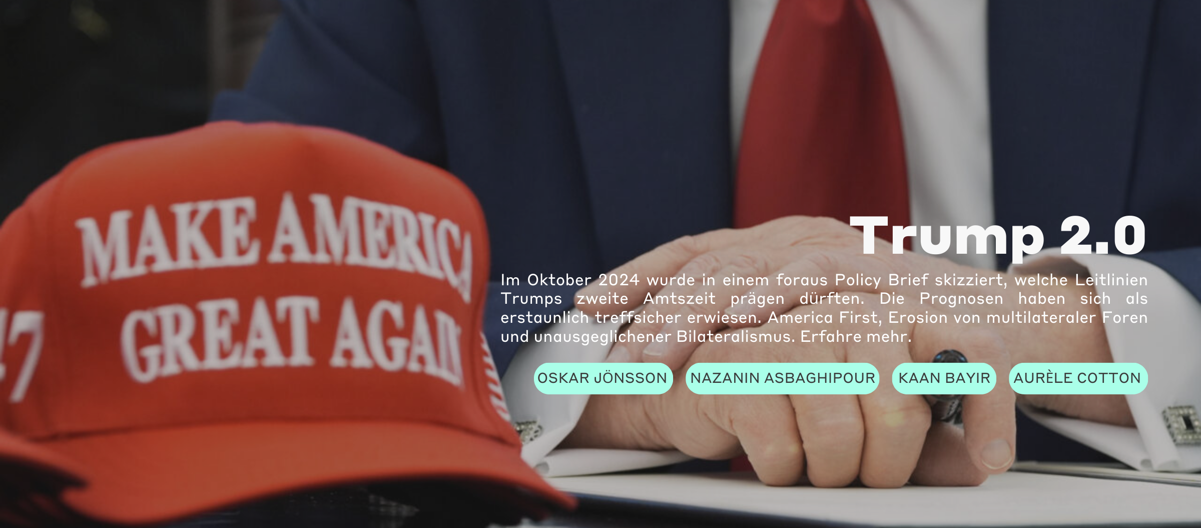 Am Tag danach, am 6. März ab 12:30 Uhr, richten wir den Blick weiter und schauen gezielt auf die Schweiz: Wie positioniert sich die Schweizer Aussenpolitik gegenüber Trump und den USA? Welche Spielräume und Abhängigkeiten ergeben sich momentan zwischen den beiden Ländern? Wie soll die Schweiz mit Trump umgehen?