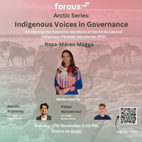 foraus Zurich is happy to present to you the last of our arctic series event: An input by the Executive Secretary at the Arctic Council Indigenous People's Secretariat (IPS) herself, Rosa-Máren Magga. Moderated by foraus regional heads, Nandin Kriplaney and Rafael Wanzenried, this event will provide insights into actic governing and the role that indigenous voices play in it.