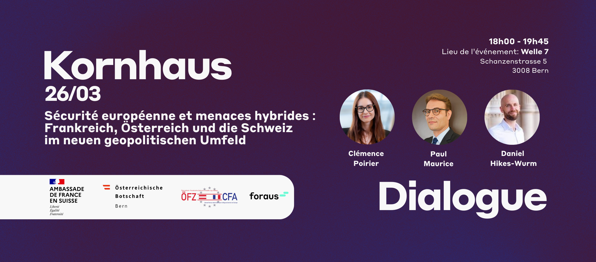 Doch welche Schwerpunkte sollte die Schweiz priorisieren, und wo liegen die grössten diplomatischen Hürden? Gemeinsam mit den Autor:innen der Publikation – foraus Policy Fellows und Mitgliedern der Schweizerischen Helsinki Vereinigung (SHV) – präsentieren wir «Schweizer OSZE-Vorsitz 2026: Handlungschancen für die Schweiz» und diskutieren die wichtigsten Erkenntnisse in einer Paneldiskussion mit Lucas Renaud, Senior Researcher im Team für Schweizer und euro-atlantische Sicherheit (CSS), dem ehemaligen Diplomaten Toni Frisch sowie Muriel Peneveyre, Leiterin der OSZE-Task-Force.Wir freuen uns, Sie am Donnerstag, 19. März 2026, ab 18:00 Uhr im Raiffeisen Forum in Bern (Schauplatzgasse 11) zu begrüssen. Der Eintritt ist frei – bitte melden Sie sich über das untenstehende Formular an.