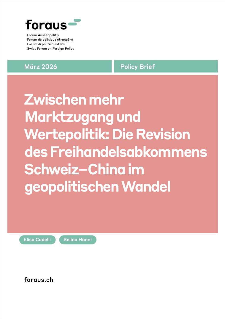Dieser Policy Brief verfolgt vier Ziele: Erstens rekonstruiert er den geopolitischen und wirtschaftlichen Kontext der FHA-Revision und zeigt auf, wie sich Chinas Innen- und Aussenpolitik seit 2013 verändert haben. Zweitens analysiert er die Rolle und die Grenzen von Freihandelsabkommen im Allgemeinen und des FHA Schweiz–China im Besonderen. Drittens beleuchtet er die Interessen und möglichen Zielkonflikte der Schweiz und Chinas. Viertens entwickelt der Brief konkrete Handlungsempfehlungen für Entscheidungsträger:innen in Bundesrat, Parlament und Verwaltung.